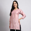White Modal Chanderi Chikankari Short Kurti – Handcrafted Elegance